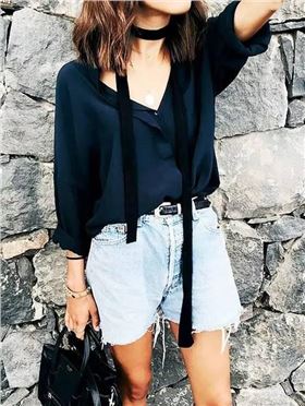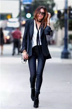 穿一件T恤,V領的款式會更加顯瘦~搭配西裝外套帥氣又瀟灑,有了領帶絲巾的增色造型更有層次感,CHIC度爆表~