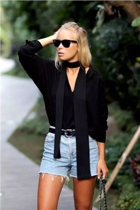 也可以搭配連衣裙或者連體褲~打造兩種不同的風格,連衣裙溫柔飄逸~連體褲帥氣中性~只要一條領帶絲巾就能做到噢!