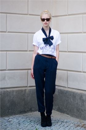 莉安德拉?梅丁再次出鏡,你可以和她一樣系一個慵懶的蝴蝶結,搭在T恤前作為裝飾。