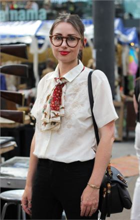 環形結遇到襯衫就比較文藝范了,可以放在衣領之下加深這種氣質。