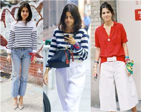 而我還要說的是莉安德拉備有好幾塊絲巾用于不同的搭配,例如海軍條紋衫會使用紅色的絲巾;而紅色上衣使用互補色綠色,很明顯,這是互襯的作用,但面積很小,即使出錯了,也不會很打眼。