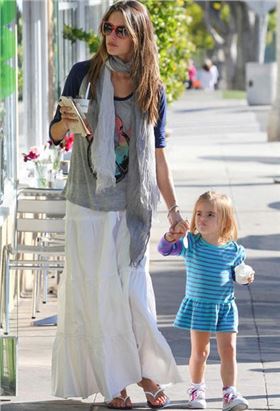 點(diǎn)評(píng):Alessandra Ambrosio雖然只是簡(jiǎn)單的將寬松的T恤和白色長(zhǎng)裙搭配,隨意飄逸的圍巾都展示著她的時(shí)尚品位。