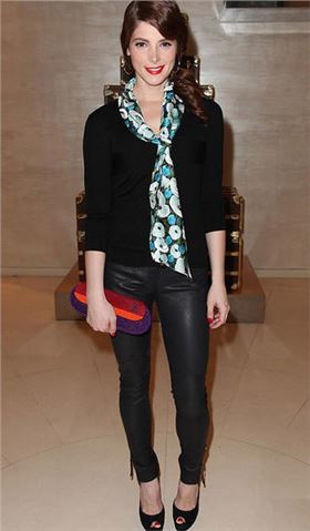 點(diǎn)評(píng):Ashley Greene完全是把這條印花圍巾作為裝飾品了,這條圍巾讓她在黑色的造型中很有亮點(diǎn)哦!