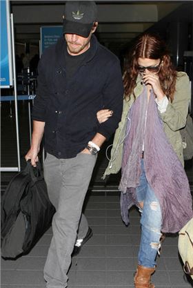 點(diǎn)評(píng):Drew Barrymore用破洞仔褲搭配工裝設(shè)計(jì)的外套更顯隨意休閑,還有一點(diǎn)中性的帥氣感覺(jué),一條素雅的淡紫色絲質(zhì)圍巾似乎就是不錯(cuò)的選擇而且還能增加女人味哦!
