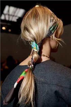 單調(diào)的馬尾,綁上絲巾,讓人更有女人味兒。